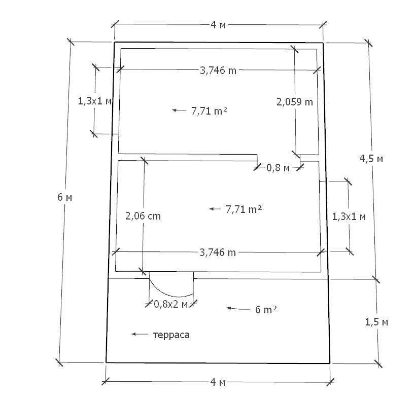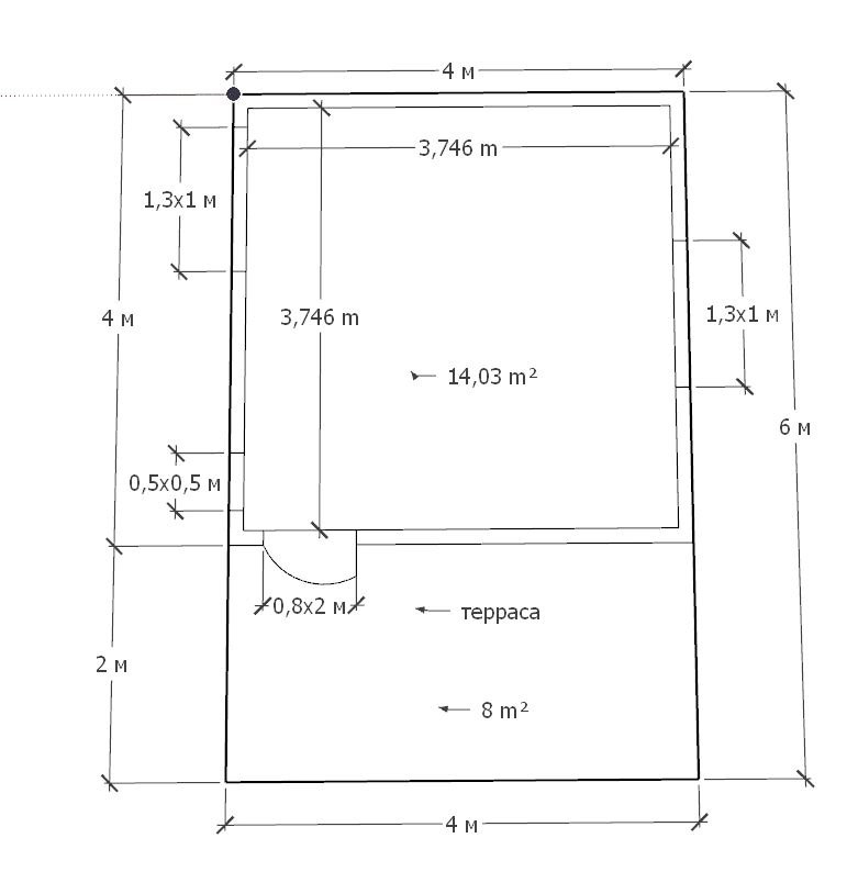 • Размер – 4х4м + 2х4м терраса