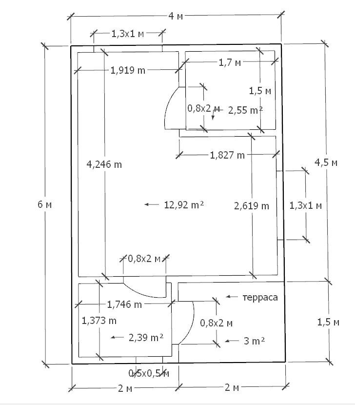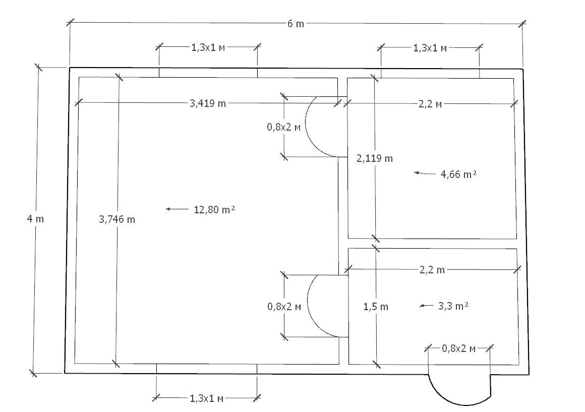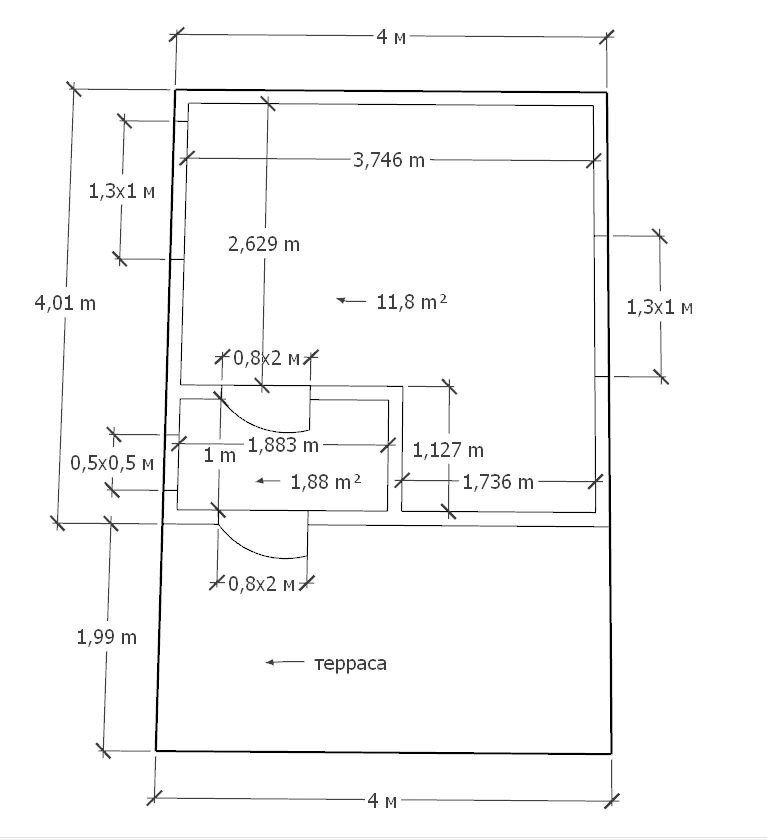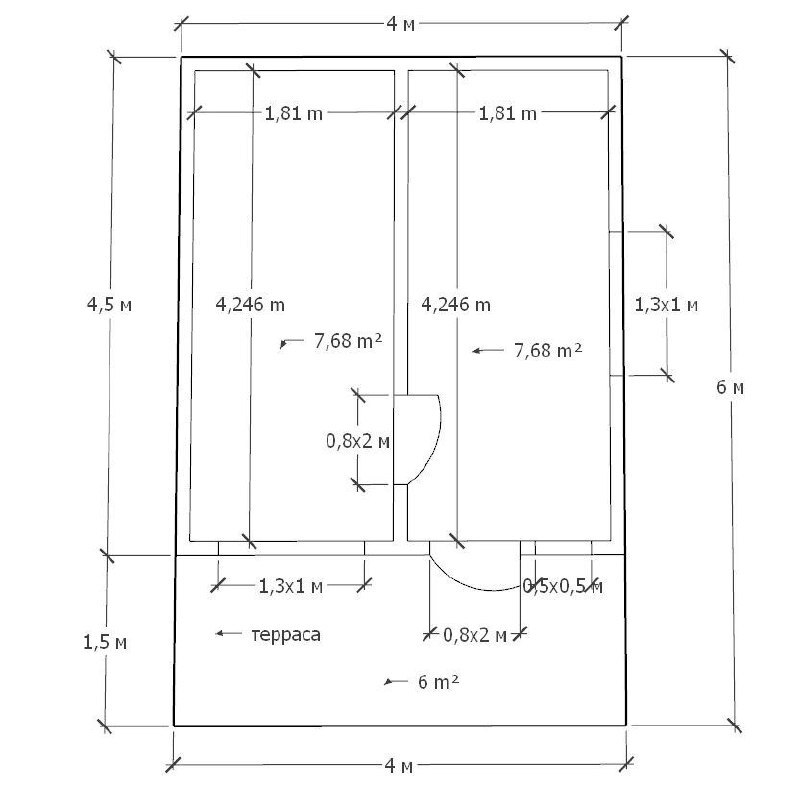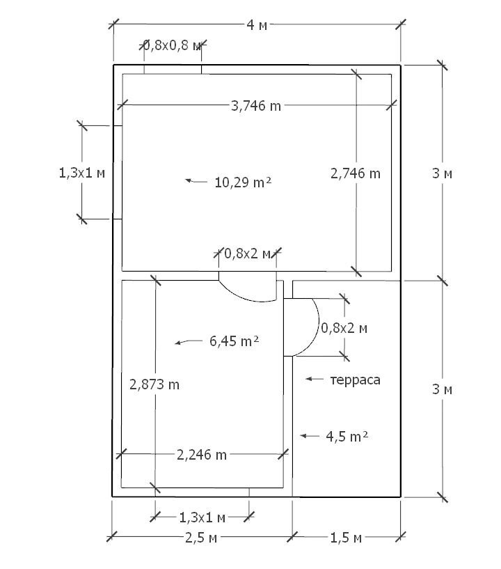 • Размер – 4х4м + 2х4м + тамбур