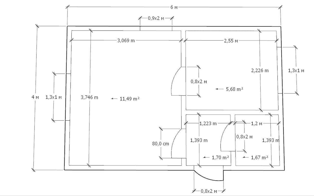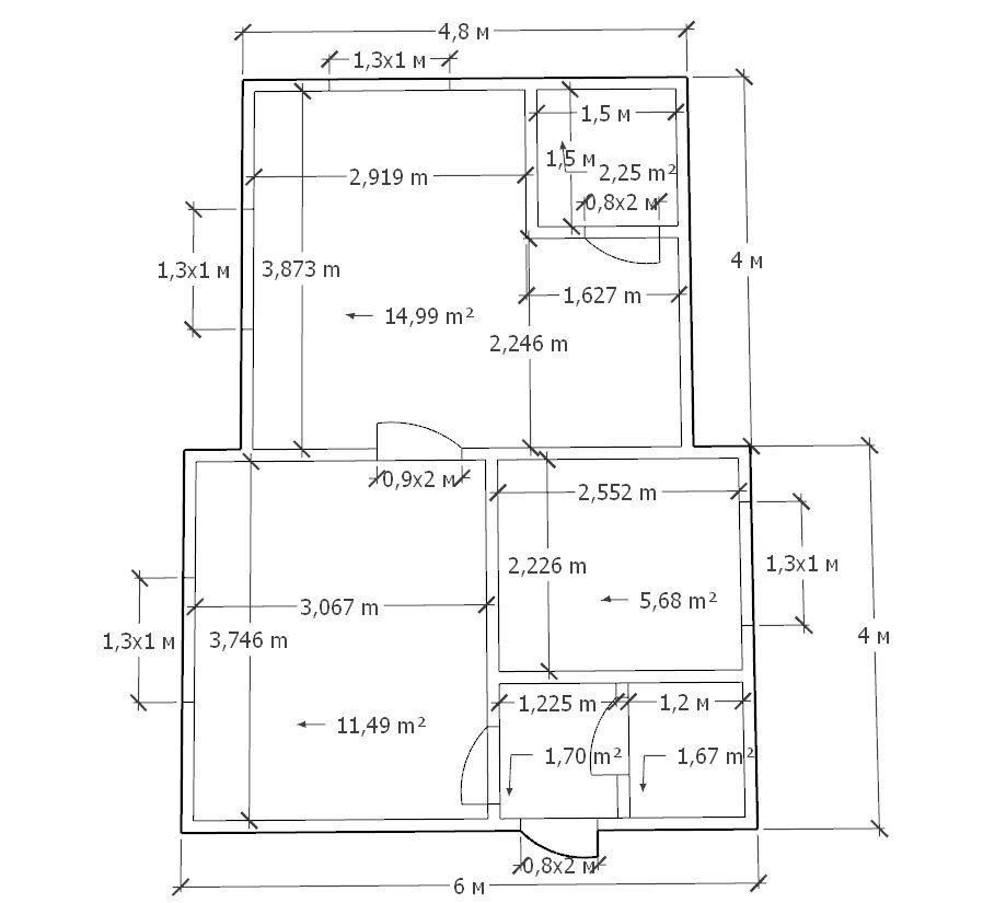 • Высота потолков – 2.25м