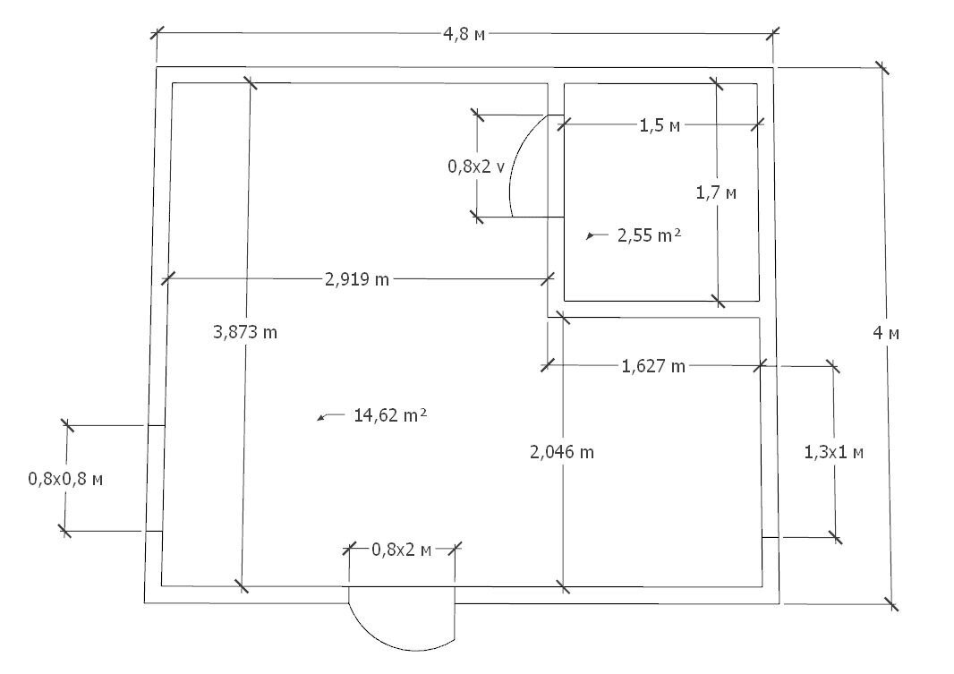 • Размер – 4х4.8м